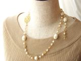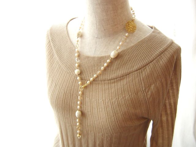 Dさんからお友達のプレゼントにご依頼いただきました。 お友達はベーシックなカラーのお洋服が多いとのこと。 長さは3箇所で調節することができます。 オーバル型のゴールドプレートがアクセントを添えます。 短くすると、真ん中にプレートとスワロフスキーのロンデルがバランスよく。 お気に召していただけますように…。 -- 材料不足のため、追加生産は難しくなりました。 Comments