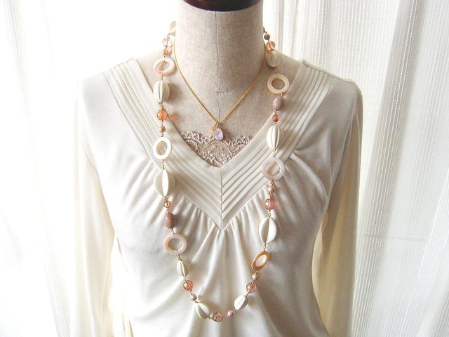 桜の季節の思い出を、胸に秘めて。 甘い香りがただようような、ロングネックレスになりました。 美しい記憶は、はかないからこそ、心に残るのでしょうか。 ★完売★ Comments