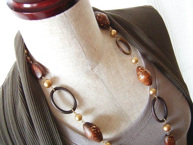 温かみのあるウッドパーツに、 ゴールドをブレンドして、大人のカジュアルに。 とっても軽いつけごこちです! 大柄さんと、小柄さん向けにサイズご用意しています。 ★完売★