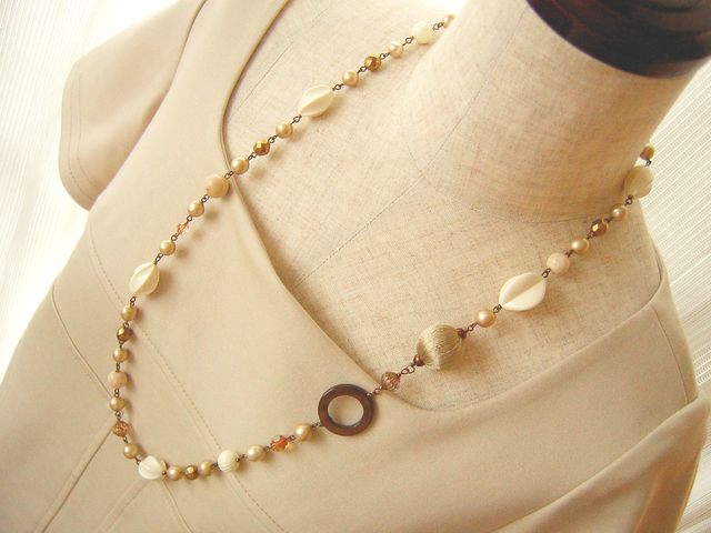 ベージュのネックレスって、気持ちが落ち着きます。